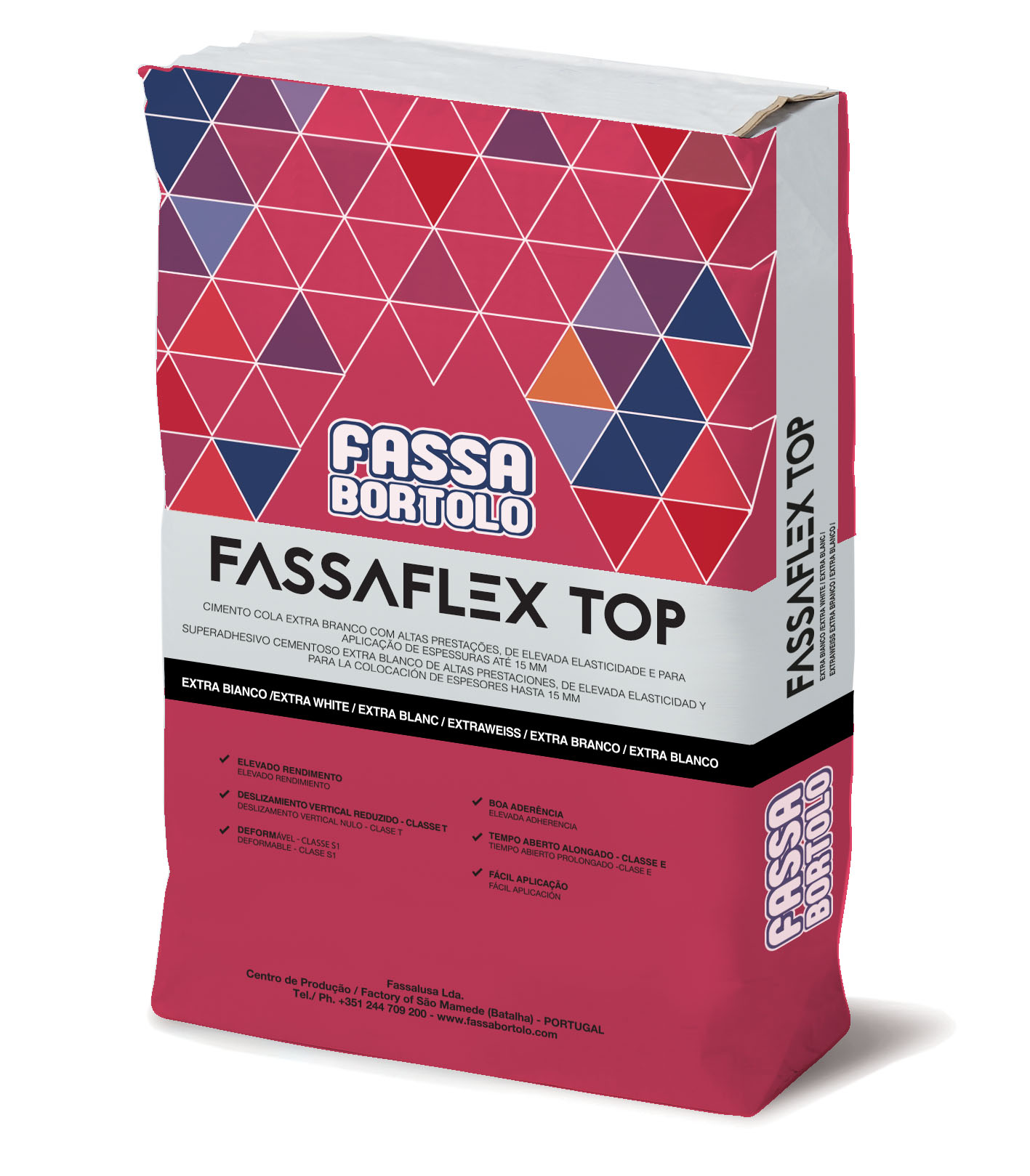 FASSAFLEX TOP é recomendado para colagem de peças até 15 mm de espessura, de média/baixa absorção em paredes e pavimentos interiores e exteriores, como por ex: