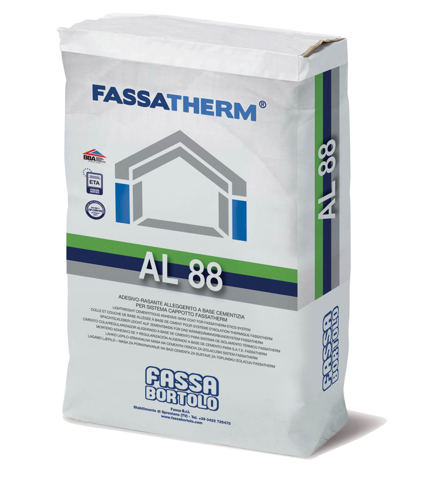 AL 88 é usado nos sistemas de isolamento “de capoto” para colar e regularizar placas em EPS cortado a partir de bloco ou moldado e painéis em lã mineral de rocha. Também é usado para embeber redes de armadura e regularizar placas em PIR.