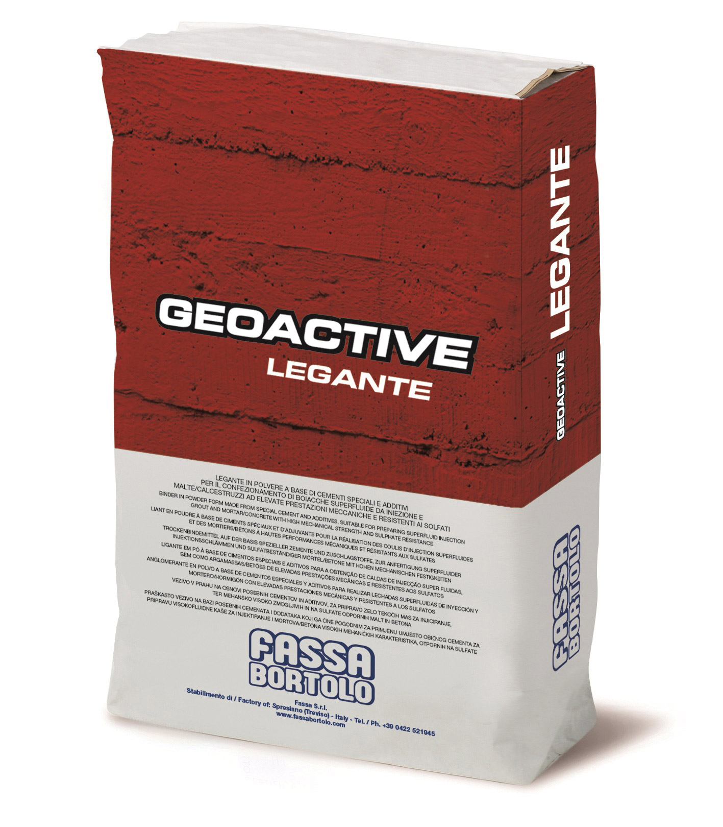 GEOACTIVE LEGANTE quando amassado com areia, agregados grossos e água permite obter um betão fluido, com baixa relação água/cimento, elevadas prestações mecânicas a curto prazo, bombeável, sem segregação e resistente aos agentes agressivos do ambiente.