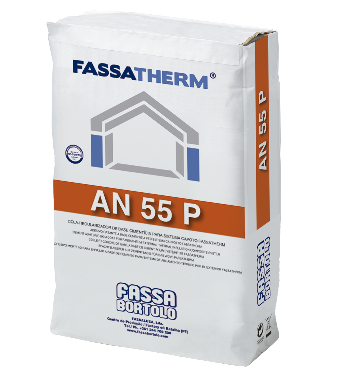 AN 55 P é utilizado para colar e regularizar placas de polistireno expandido (EPS) com redes em fibra, regularização de superfícies em betão.