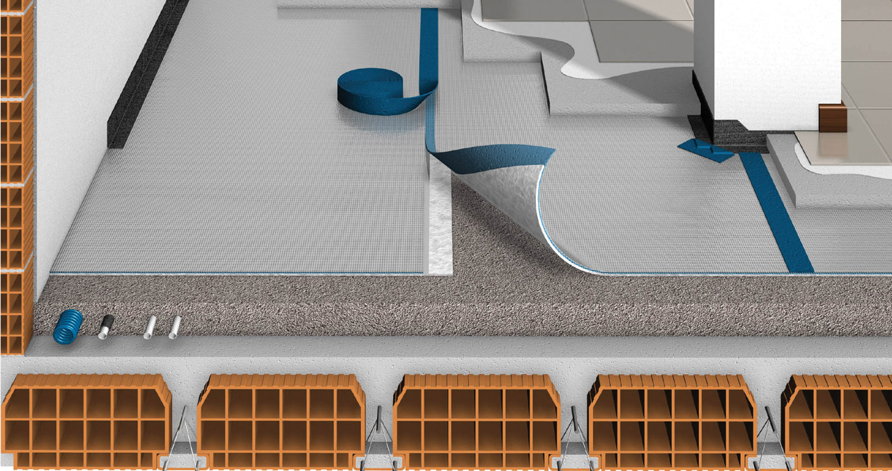 Isolamento acústico ao ruído de impacto de contrapisos em conformidade com o previsto no DPCM 05.12.97, mediante a realização de uma betonilha flutuante destinada à posterior aplicação de revestimentos, tais como cerâmica, madeira, material pétreo, resilientes e têxteis.