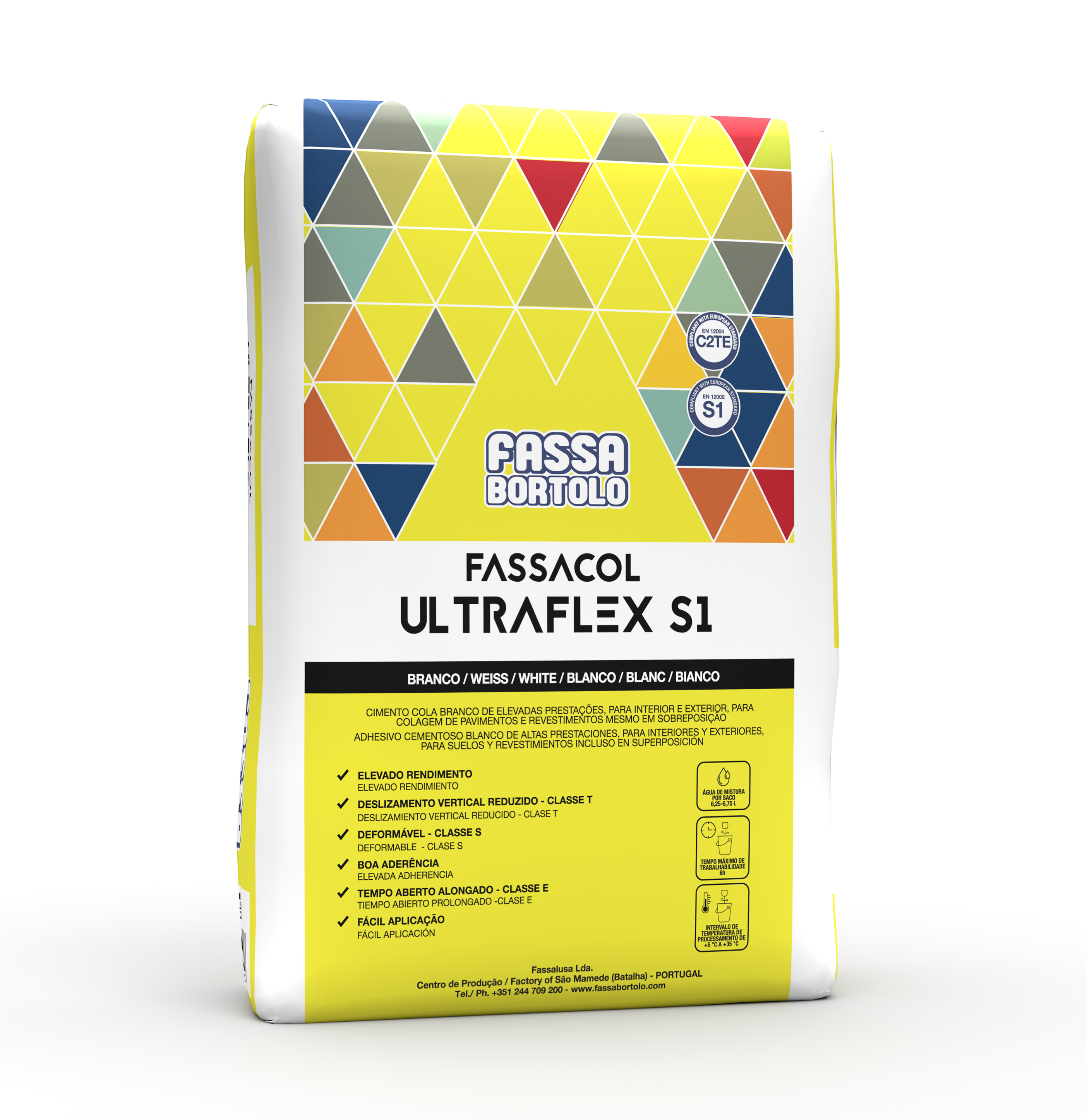 FASSAFLEX é um cimento cola monocomponente branco e cinza, de altas prestações e deslizamento vertical nulo, com tempo aberto alongado, boa elasticidade e deformável para pavimentos e revestimentos seja interior como exterior.