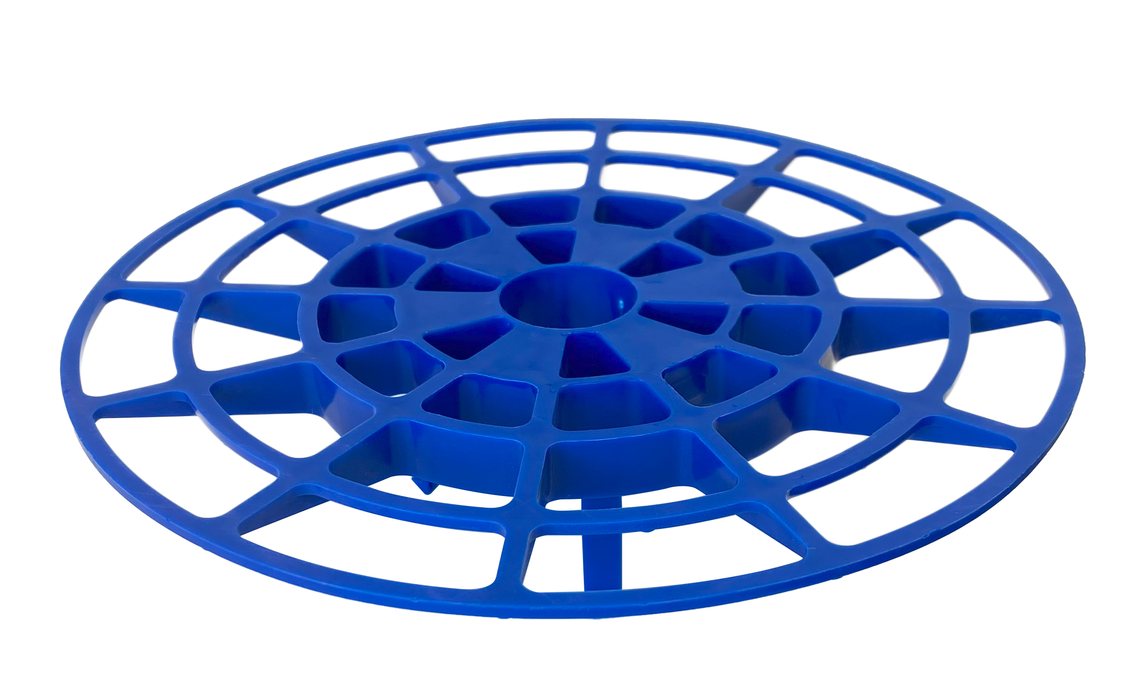 Anilha espaçadora em plástico especial com três espessuras para sistema de isolamento térmico avançado. Cor: azul