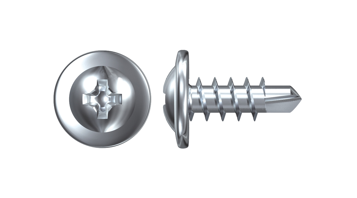 Parafuso autoperfurante com ponta de broca e cabeça plana para fixação de metal em metal com espessura inferior a 2,0 mm.